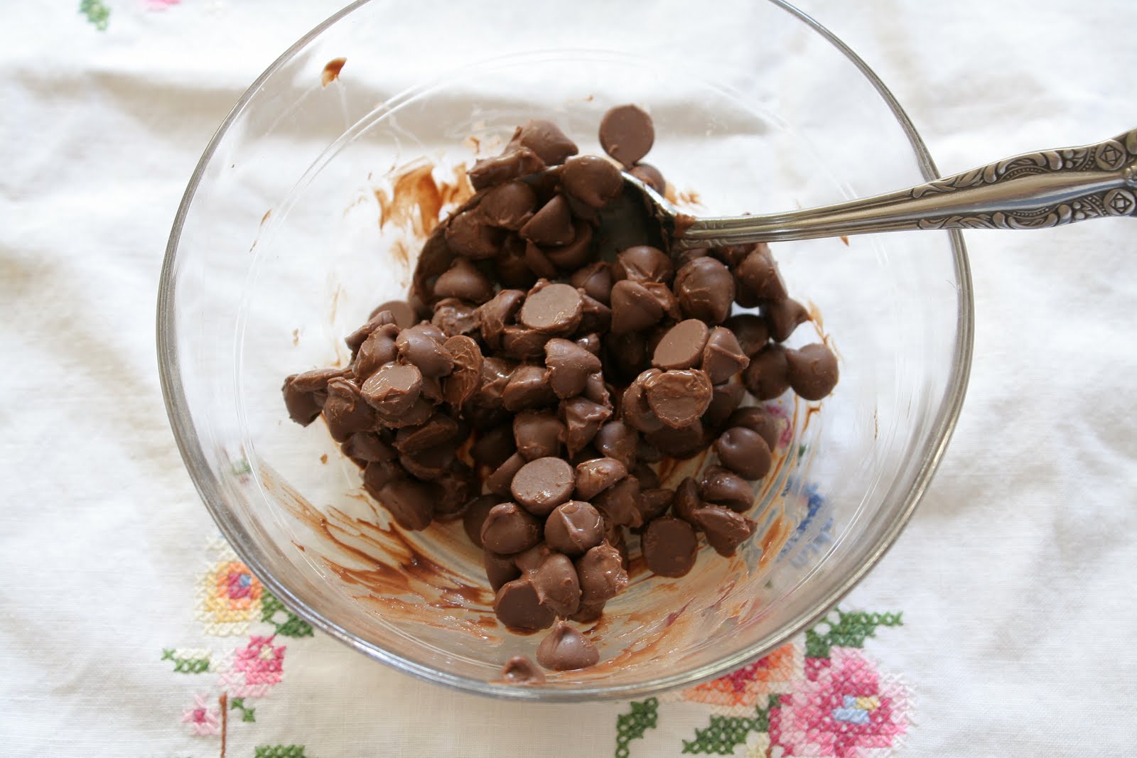 Remove from microwave and stir with a spoon. This step distributes the uneven heat caused by the microwave and helps melt the chocolate evenly.